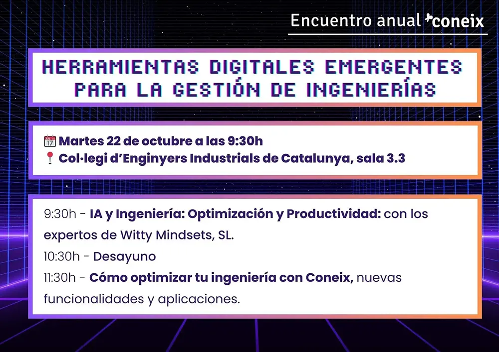 Descubre lo último en herramientas digitales para la gestión de ingenierías y disfruta de un encuentro agradable junto con otros profesionales de tu sector.