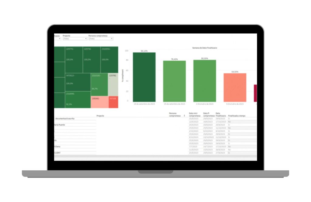 KPIs de gestión empresarial con Coneix - pantalla seguimiento de tareas y previsión a futuro mediante metodología Lean